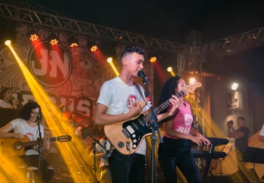 A Bateras Beat Palmas é uma escola de música localizada em Palmas, Tocantins, onde eu atuo como instrutor de diversos instrumentos, incluindo bateria, violão, guitarra, contrabaixo e ukulele. É gratificante ensinar alunos a partir dos 4 anos de idade, ajudando-os a desenvolver suas habilidades musicais e a expressar sua criatividade. Além das aulas, também participo ativamente dos eventos promovidos pela escola, nos quais os alunos têm a oportunidade de se apresentar e mostrar os resultados do seu aprendizado. Essas apresentações são momentos especiais que não apenas celebram o progresso dos estudantes, mas também fortalecem a comunidade musical da escola, proporcionando um espaço alegre e encorajador para todos os envolvidos. Assim, a Bateras Beat Palmas se destaca como um lugar onde a música é acessível e celebrada em todas as suas formas.
