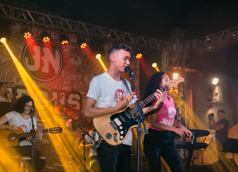 A banda Jesus de Nazaré foi um projeto significativo que surgiu na comunidade São Pedro, na paróquia Jesus de Nazaré, em Palmas, Tocantins. Como integrante, tive a oportunidade de atuar como produtor, guitarrista e cantor. Minha função como producer envolvia a criação de arranjos musicais que expressassem a essência da nossa fé e o estilo da banda. Também era responsável por comandar os ensaios, garantindo que todos os membros estivessem alinhados e preparados para as apresentações. Um dos meus maiores desafios e conquistas foi a produção do nosso DVD, que capturou a energia e a devoção da nossa música, permitindo que alcançássemos mais pessoas e propagássemos nossa mensagem por meio da arte. Essa experiência foi fundamental para o meu crescimento musical e pessoal, fortalecendo minha ligação com a comunidade e a música.
